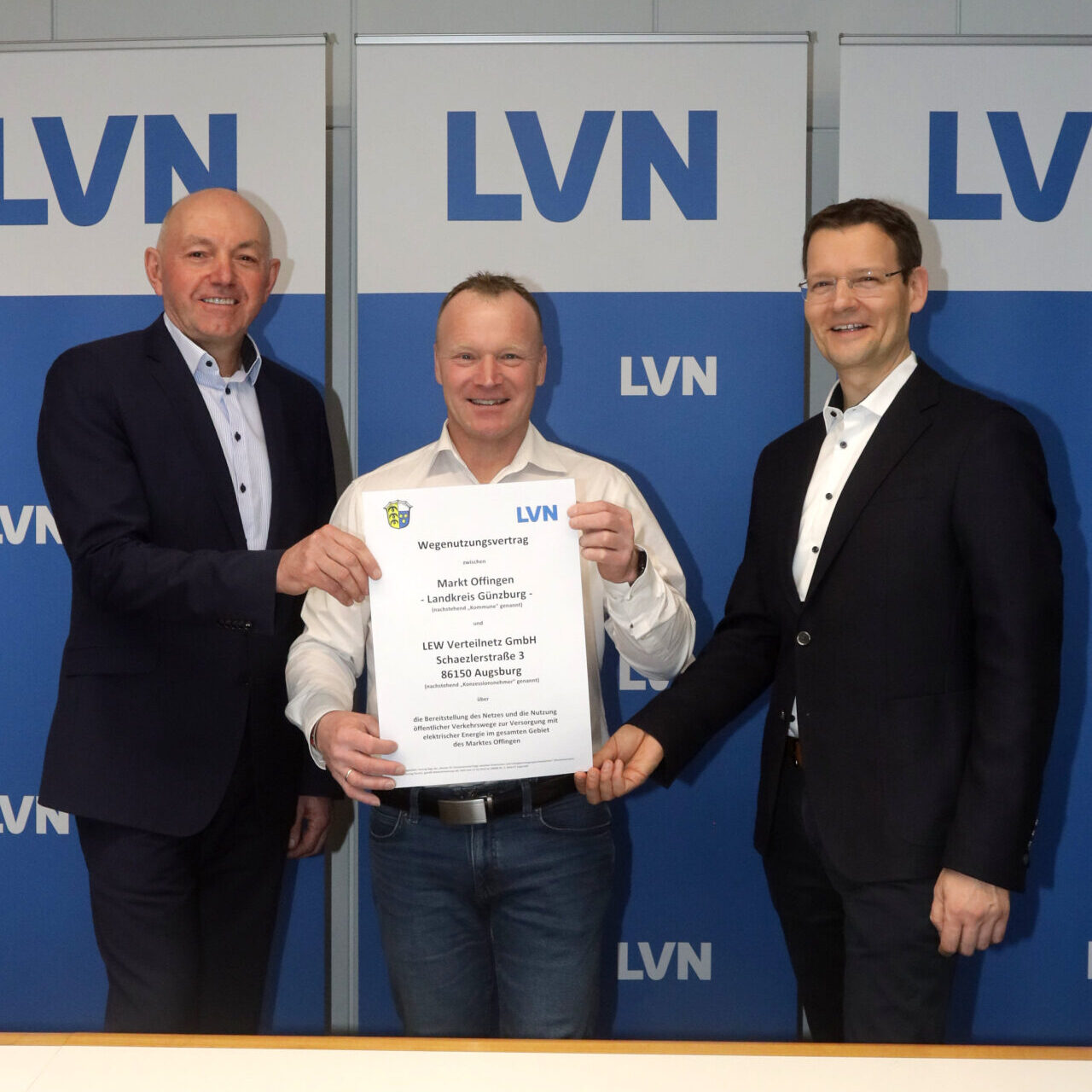 Der Markt Offingen und die LEW Verteilnetz GmbH schlagen ein neues Kapitel in ihrer langjährigen Strompartnerschaft auf: Der Marktgemeinderat hat die Erneuerung des Stromkonzessionsvertrags mit der LEW Verteilnetz (LVN) um weitere 20 Jahre beschlossen. Bei einem gemeinsamen Termin im Firmensitz der Lechwerke in Augsburg unterzeichneten Bürgermeister Thomas Wörz und Josef Wagner, Geschäftsführer der LEW Verteilnetz die Vertragserneuerung.